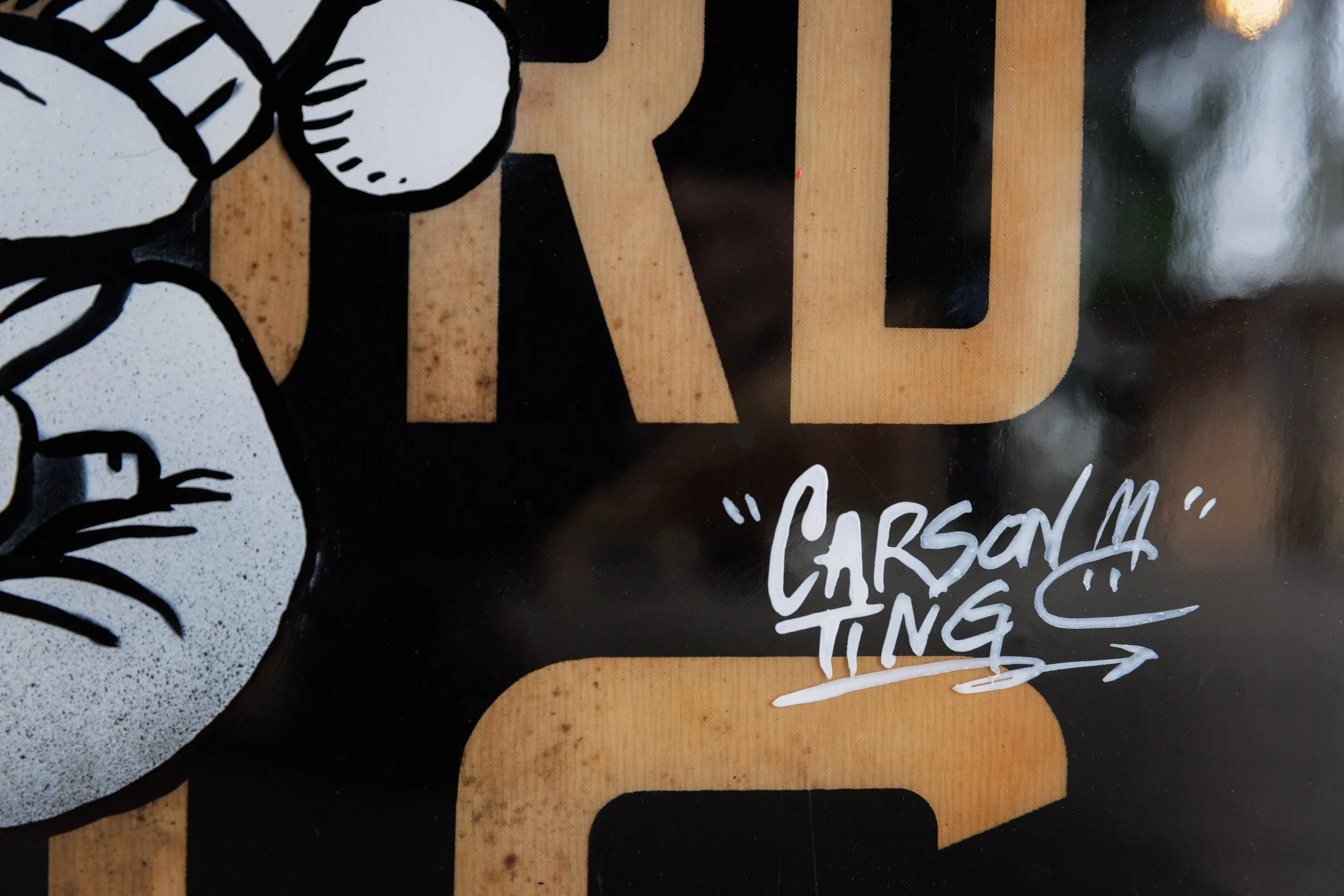 Using the salvaged scrolls as a foundation, Ting painted vintage TTC streetcars intertwined with characters and motifs from his Billion Buns universe. The result is a seamless fusion of nostalgia and identity—a visual conversation between eras, bridging childhood memory with contemporary imagination.